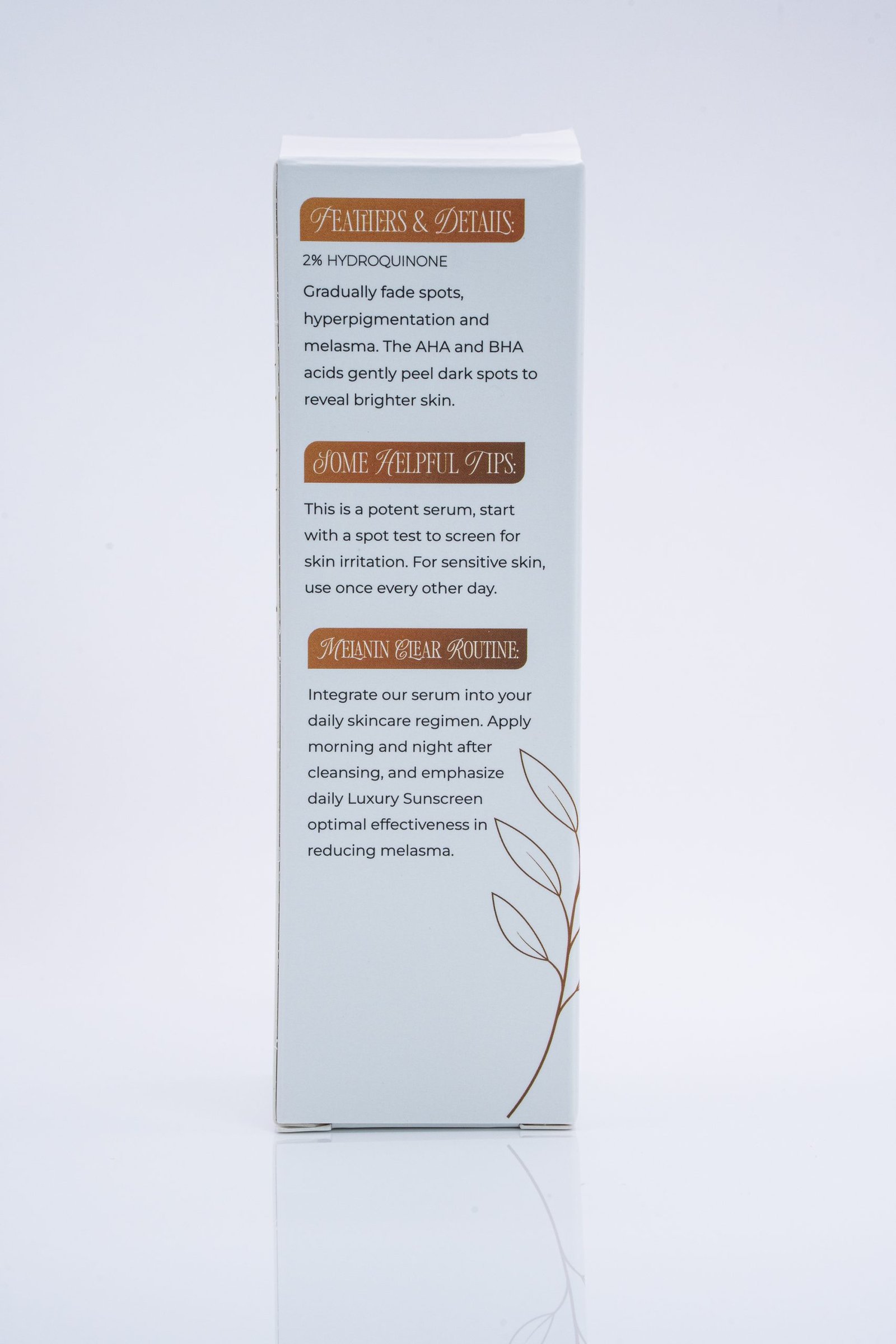 - 2% Hydroquinone: Clinically proven to reduce hyperpigmentation and melasma by inhibiting melanin production.