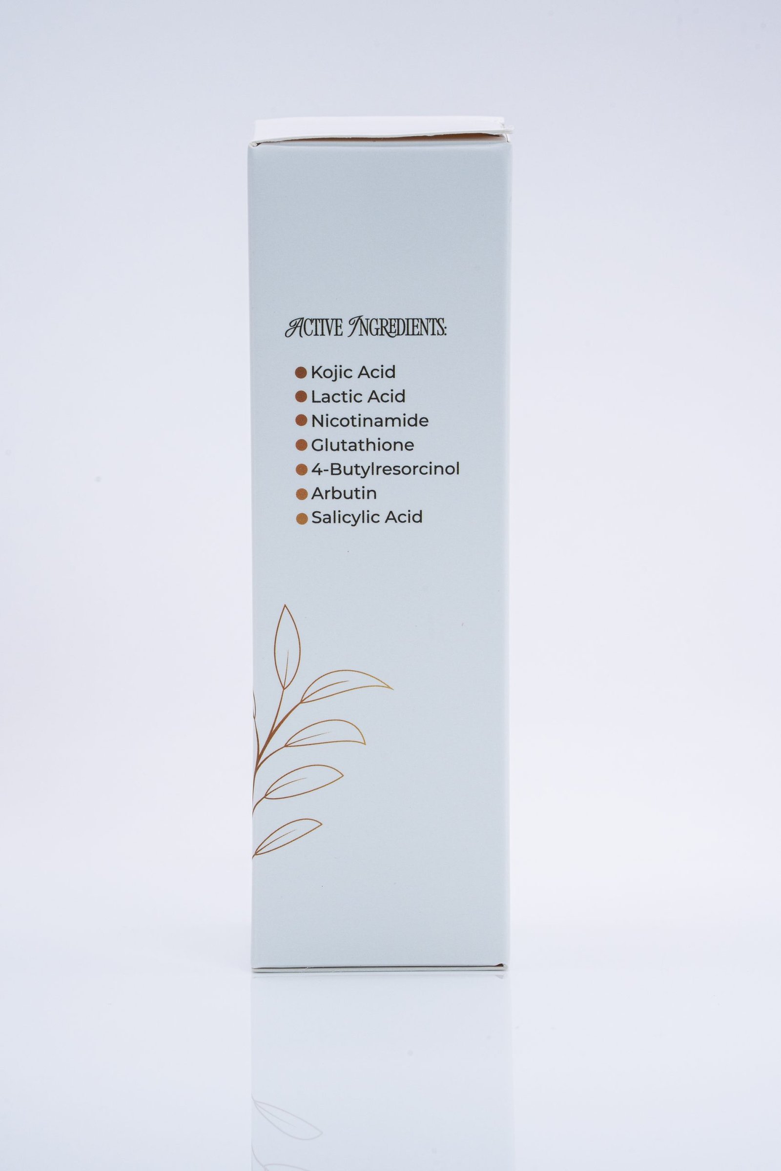 Aqua (Water), Hydroquinone (2%), Kojic Acid, Lactic Acid, Arbutin, Glutathione, 4-Butylresorcinol, Salicylic Acid, Niacinamide, Glycerin, Propylene Glycol, Phenoxyethanol, Ethylhexylglycerin.