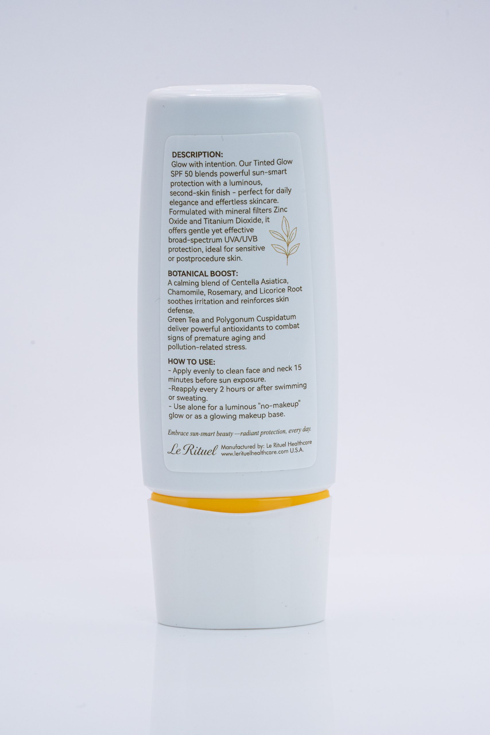 A lightweight tinted mineral sunscreen that blends skincare and sheer coverage for a naturally radiant finish. Tinted Glow SPF 50 delivers broad-spectrum protection, skin-calming botanicals, and a subtle “second skin” glow — all in one step.